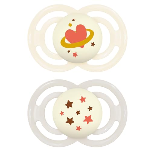 MAM Perfect Night Soothers | 0-6 Months | 2 Pack | Glow in The Dark Dummies | Comes in Dummy Steriliser Case | Baby Accessories for Newborn | White (Various Designs)