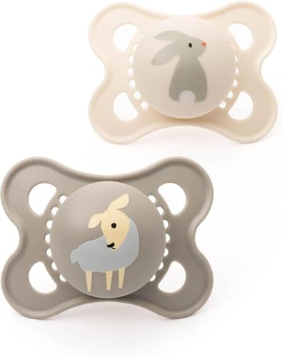 MAM Original Soothers | 0-6 Months | 2 Pack | Comes in Dummy Steriliser Case | Sustainable Materials | Baby Accessories for Newborn | Grey/Cream (Various Designs)