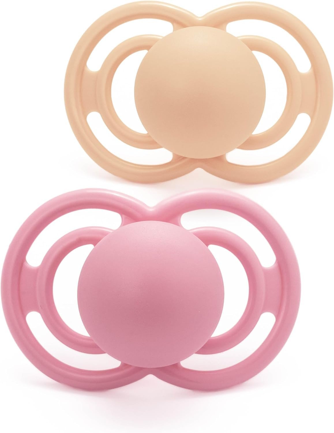 MAM Perfect Soothers | 6 Plus Months 2 Pack Comes in Dummy Steriliser Case Sustainable Materials Baby Accessories Pink (Various Designs)