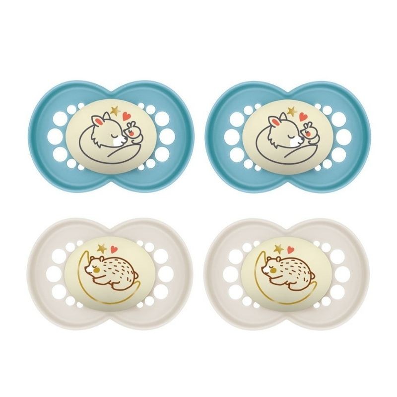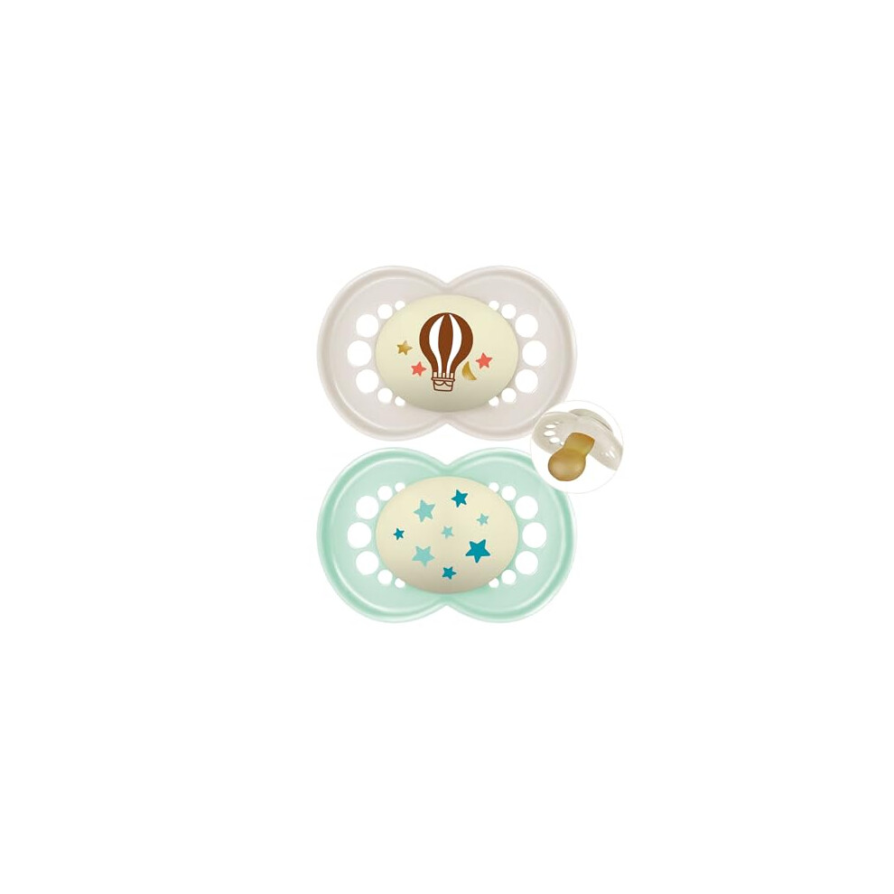 MAM Latex Original Night Soothers | 18-36 Months | Glow in The Dark Dummies | Comes in Dummy Steriliser Case | Baby Accessories | Blue/Cream (Various Designs)