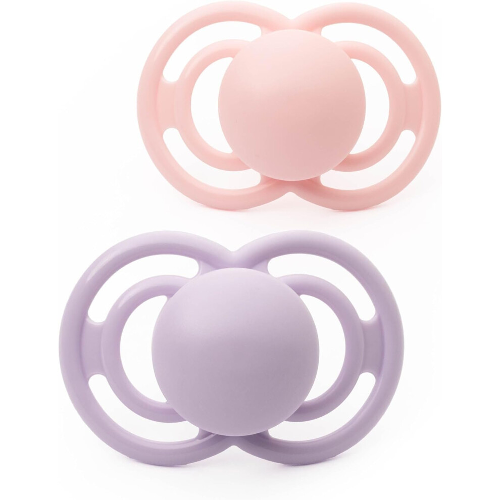 MAM Perfect Soothers | 6-18 Months | 2 Pack | Comes in Dummy Steriliser Case | Sustainable Materials | Baby Accessories | Pink/Lilac (Various Designs)