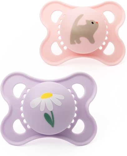 MAM Perfect Soothers | 6 Plus Months | 2 Pack | Comes in Dummy Steriliser Case | Sustainable Materials | Baby Accessories | Pink (Various Designs)