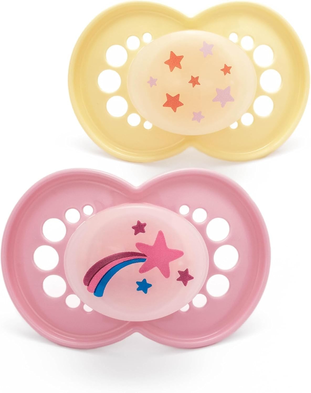 MAM Air Night Soothers | 18-36 Months | 2 Pack | Glow in The Dark Dummies | Comes in Dummy Steriliser Case | Sustainable Materials | Baby Accessories | Pink (Various Designs)