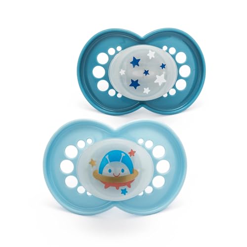MAM Rubber Air Night Soothers | 16 Plus Months | Glow in The Dark Dummies | Comes in Dummy Steriliser Case | Baby Accessories | Blue (Various Designs)