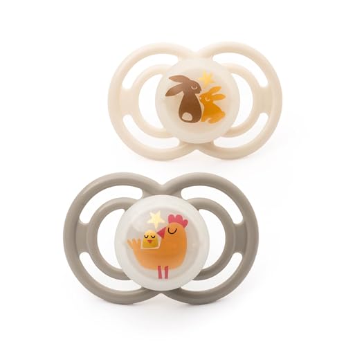 MAM Perfect Night Soothers | 18-36 Months | Pack of 2 | Glow in The Dark Dummies | Comes in Dummy Steriliser Box | Sustainable Materials | Baby Accessories | Cream (Various Designs)
