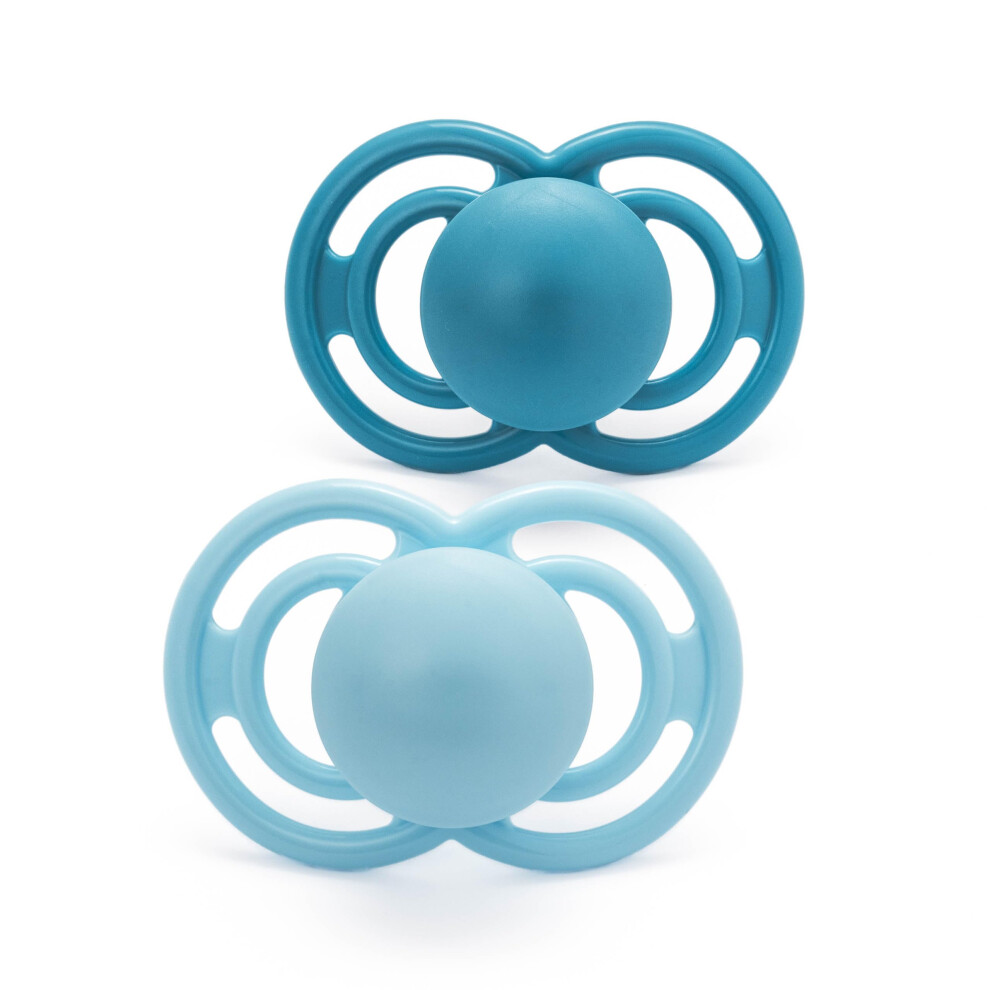MAM Comfort All Silicone Soothers | 3-12 Months | 2 Pack | Comes in Dummy Steriliser Case | Sustainable Materials | Baby Accessories | Grey/Blue