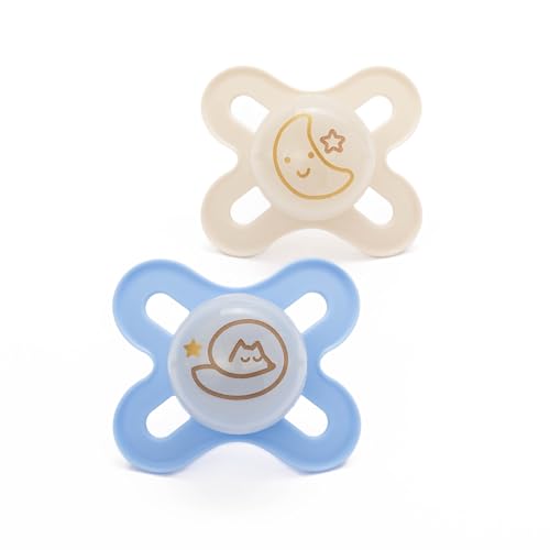 MAM Original Start Night Soothers | 0-2 Months | 2 Pack | Newborn Dummies | Glow in The Dark | Comes in Dummy Steriliser Box | Sustainable Materials | Blue (Designs May Vary)
