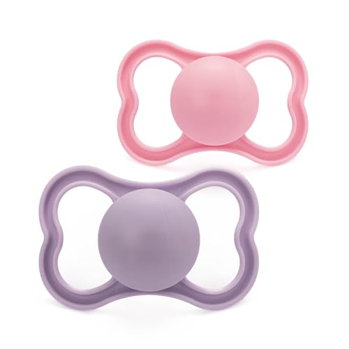 MAM Air Soothers 6 Plus Months | 2 Pack | Orthodontic Design | Comes in Dummy Steriliser Case | Sustainable Materials | Baby Accessories | Pink (Various Designs)