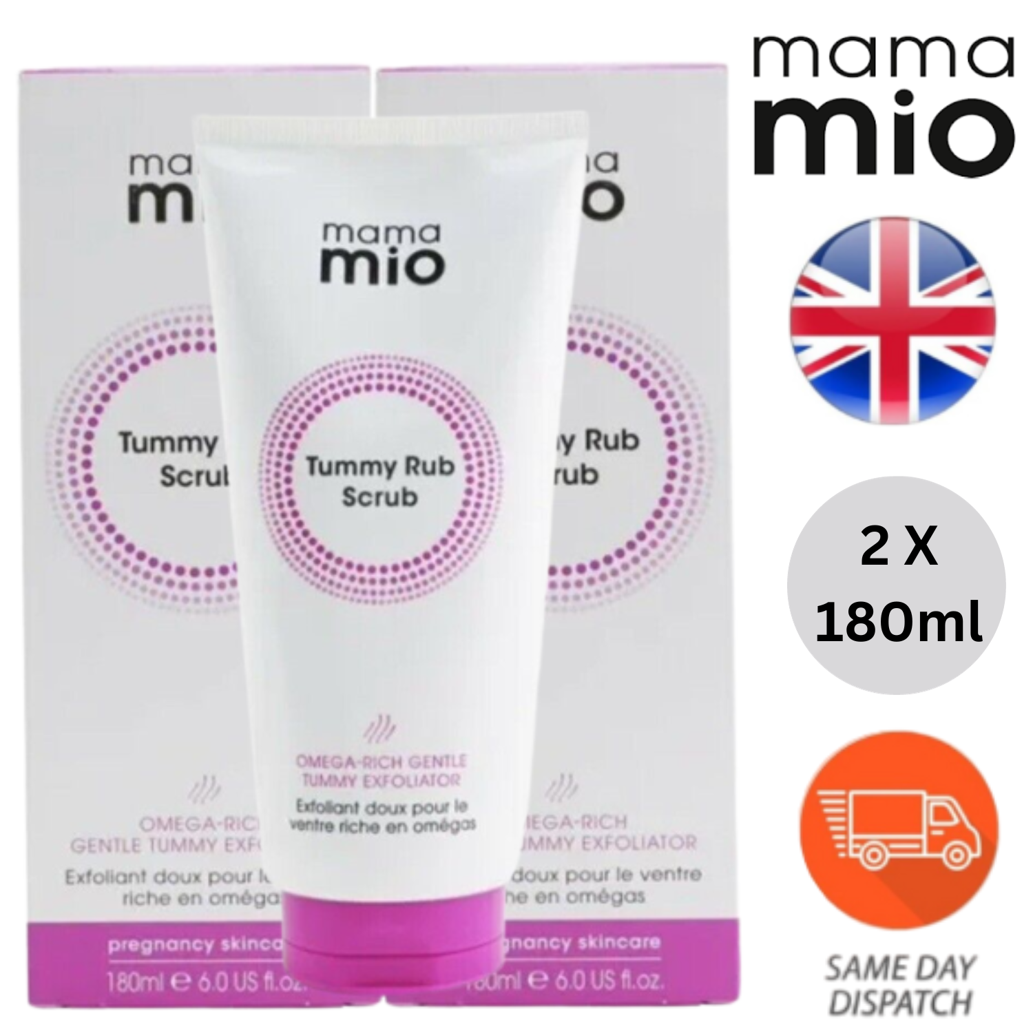 2 X 180ml Mama Mio Tummy Rub Scrub Omega Rich Gentle for Dry Skin