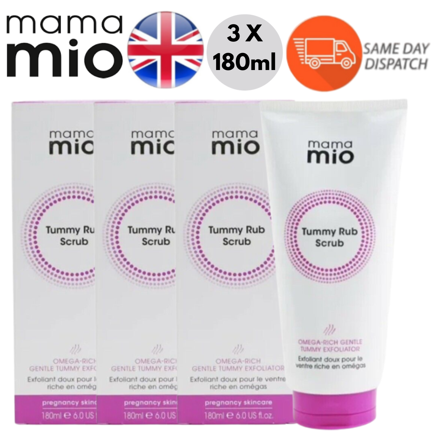 3 X 180ml Mama Mio Tummy Rub Scrub Omega Rich Gentle for Dry Skin
