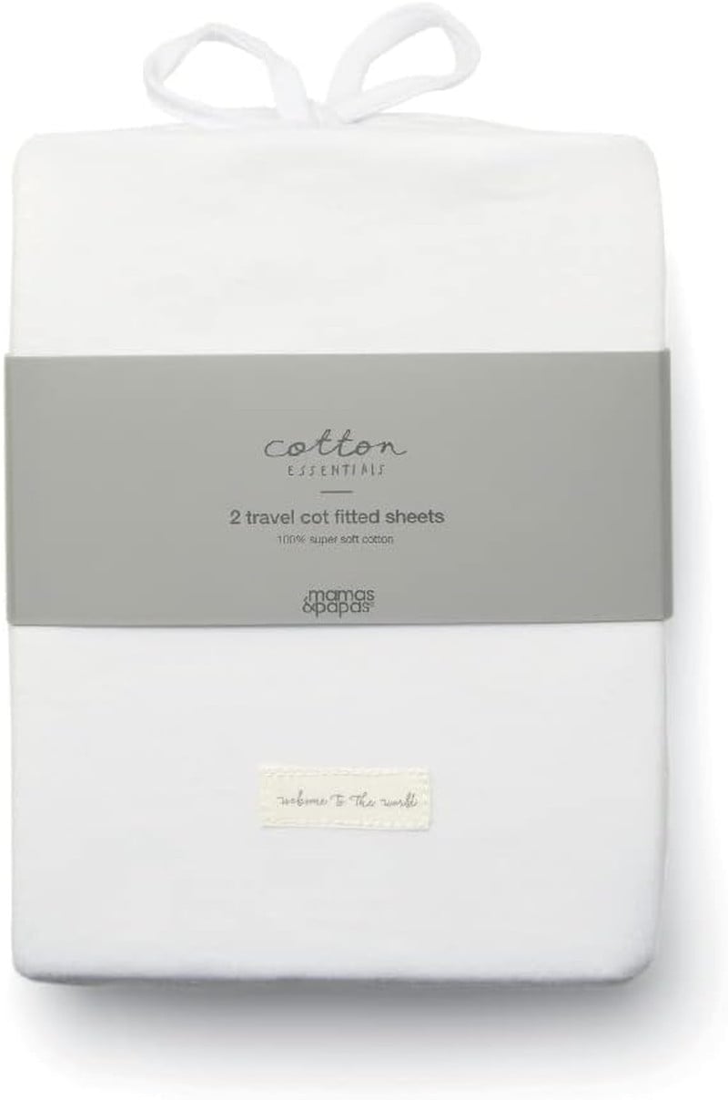 Mamas & Papas 2 Pack Travel Cot Fitted Sheets, White (94x65 x 10 m)