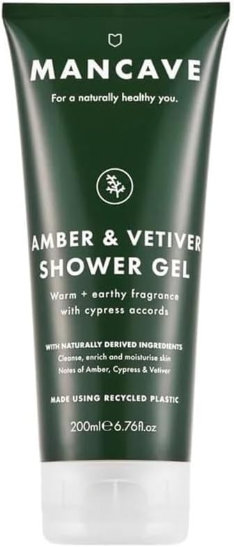 ManCave Amber Vetiver Mens Shower Gel, Body Wash, Natural Ingredients, Vegan, E