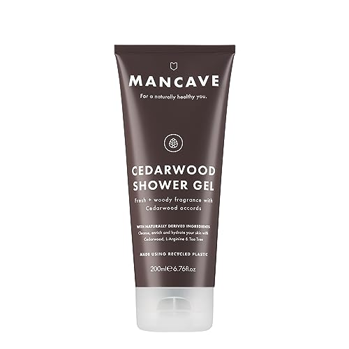 ManCave Cedarwood Mens Shower Gel, 200 ml, Body Wash, Natural Ingredients, Vegan, Eco-Conscious and Cruelty-Free, Fresh Woody Shower Gel for Men with Eucalyptus, Pine Needle, Body Wash for Men
