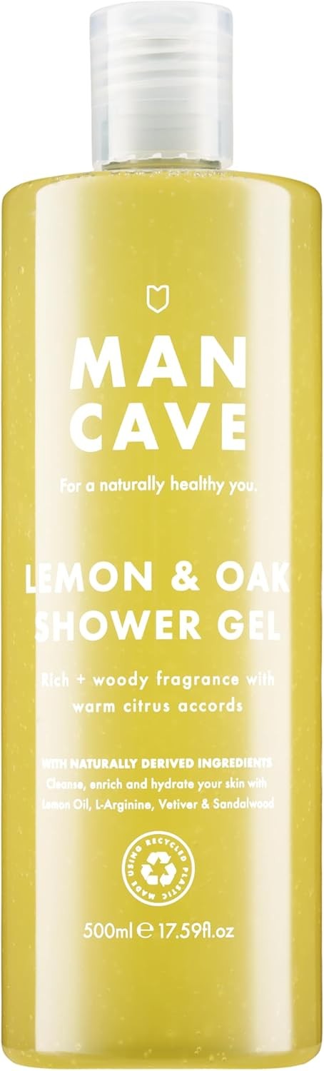 ManCave Lemon and Oak Mens Shower Gel, 500 ml, Body Wash, Natural Ingredients,