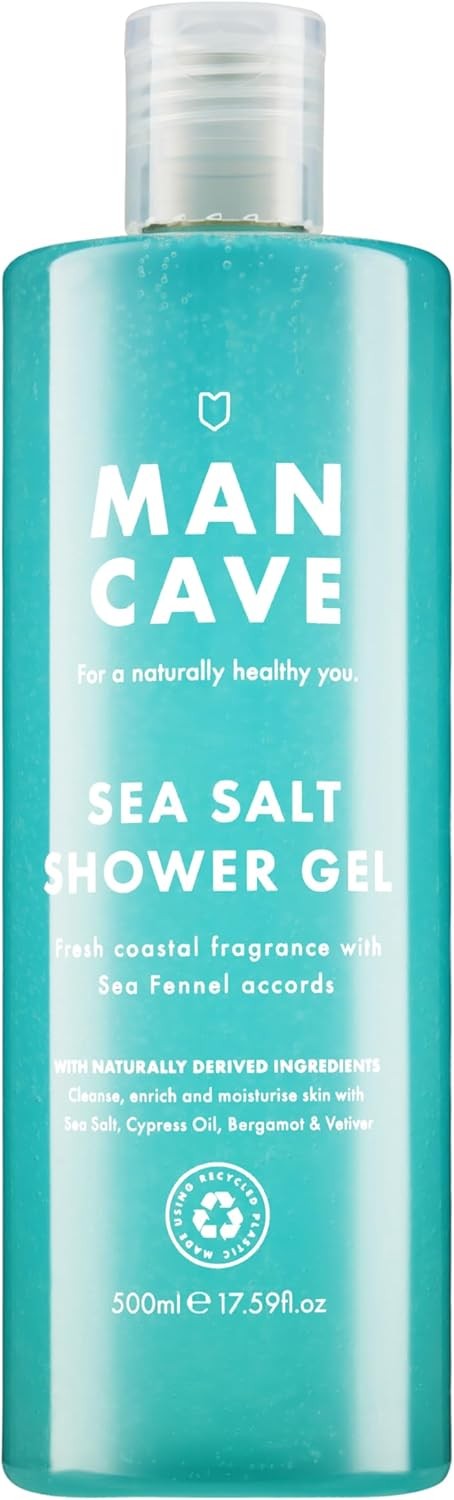 ManCave Sea Salt Mens Shower Gel, 500 ml, Body Wash, Natural Ingredients, Vegan
