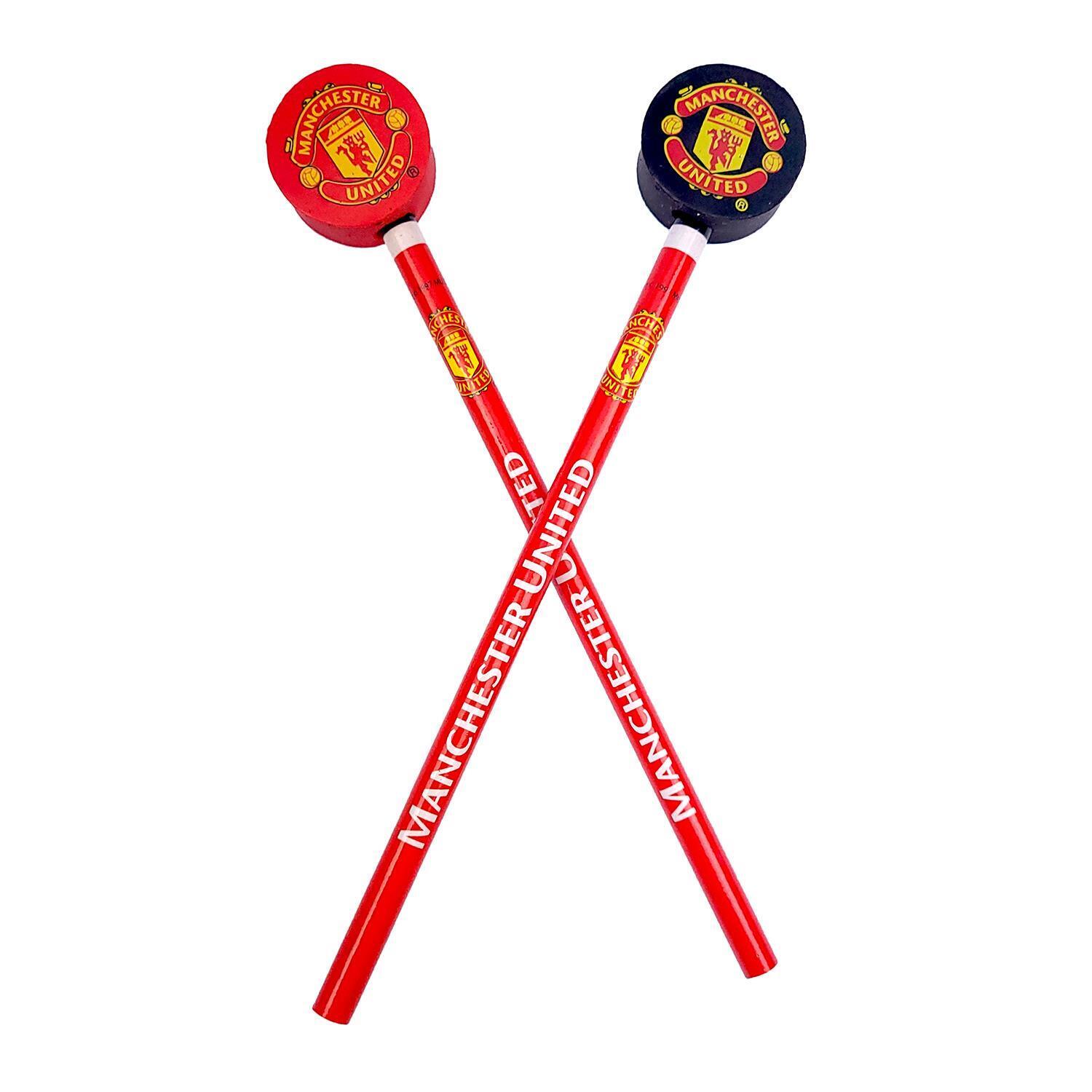 Manchester United Man Utd Pencil & Eraser Duo Set Black & Red Devil Stationery