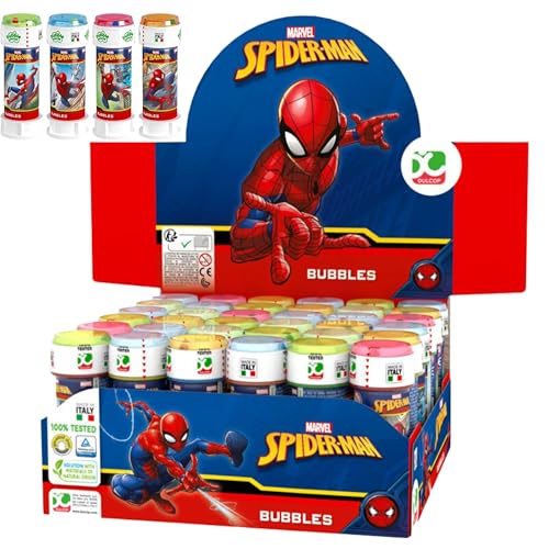Marvel Spider-Man Bubble Tubes with Wand 60ml – 12 Pack Kids Bubble Party Favours – Puzzle Maze Lid Bubble Blower Party Bag Fillers