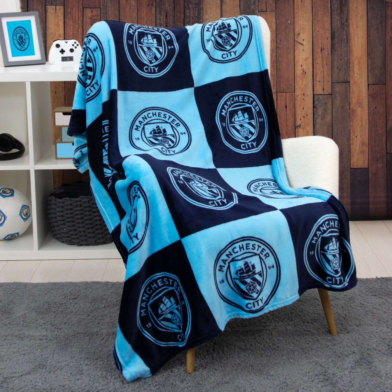 Manchester City FC Large Blanket Football Super Soft Fleece Throw Blue Cityzens