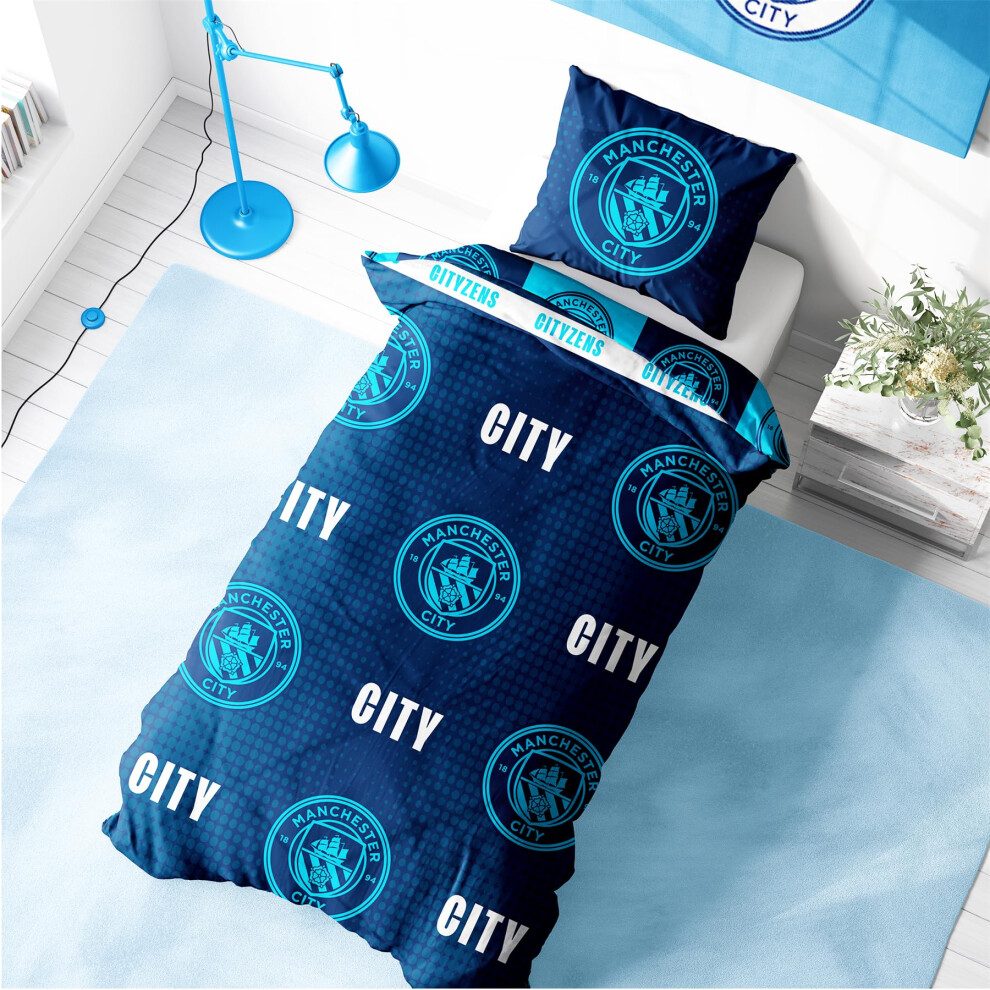 Manchester City FC Single Duvet Cover & Pillowcase Set Crest Football Bedding