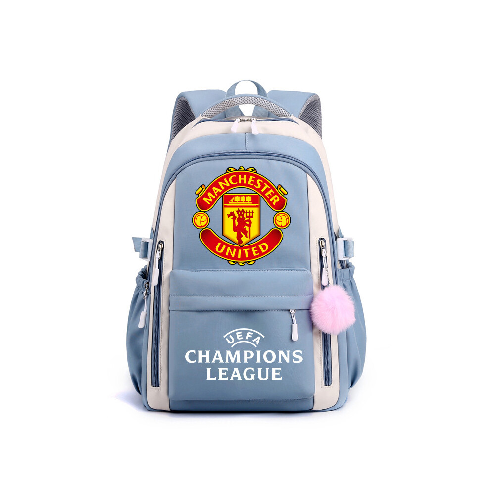 (Blue - Manchester United) Champions League backpack fashion trend Real Madrid Barcelona Paris Grand Backpack Student schoolbag men's Manchester City