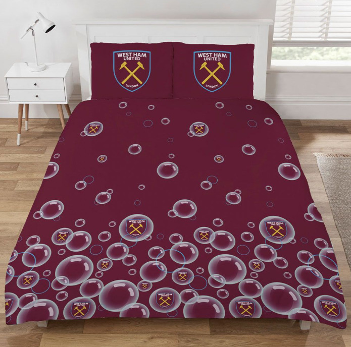 West Ham United FC Forever Blowing Reversible Bubbles Duvet Cover Set in Maroon | Size: Double