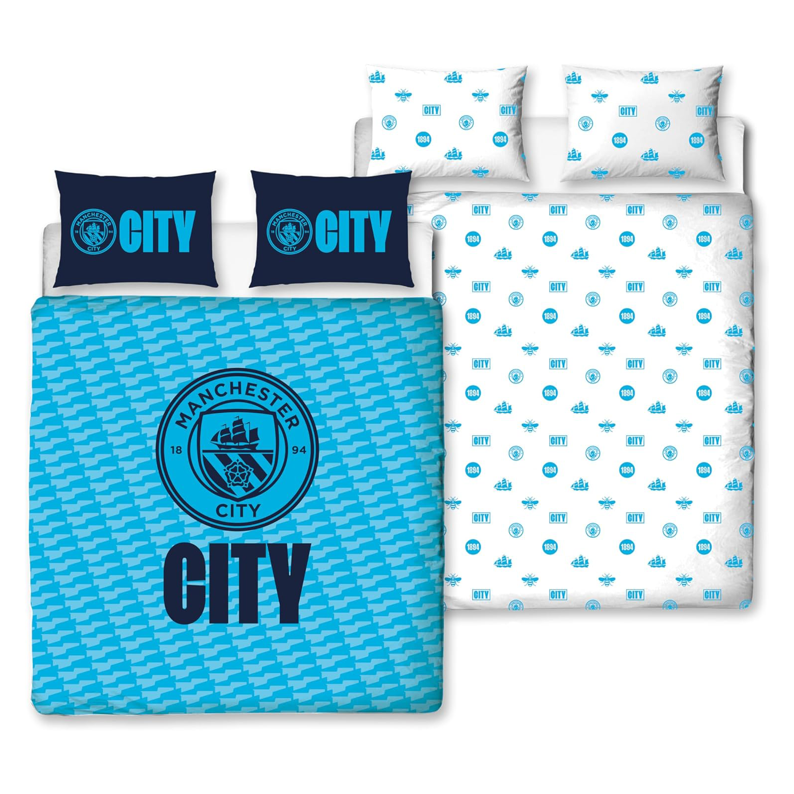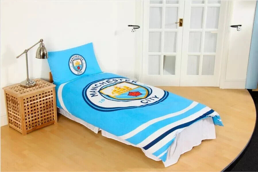 MANCHESTER CITY DOUBLE DUVET COVER BEDDING SET FOOTBALL BEDROOM GIFT