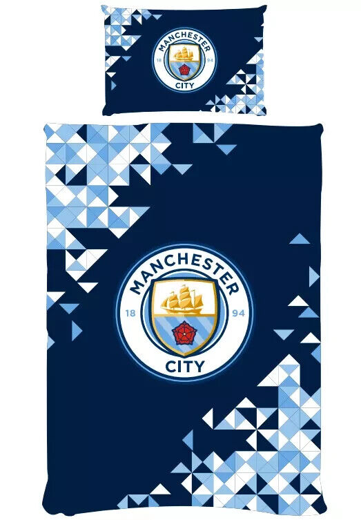 Manchester City Crest Single Duvet Cover Set Football Kids Bedroom 2-in-1 Design