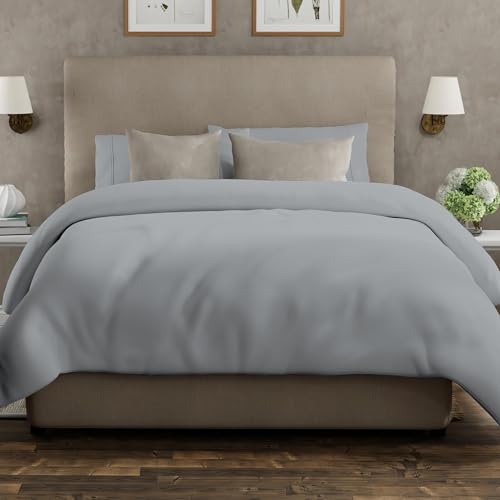 The Cotton Exchange Manchester 100% Cotton Single Duvet Cover Set 135x200 cm, Light Grey, Crisp Percale Quilt Cover with Hidden Button Closure, Cooling Lightweight Single Bedding, Hotel Quality Duvet