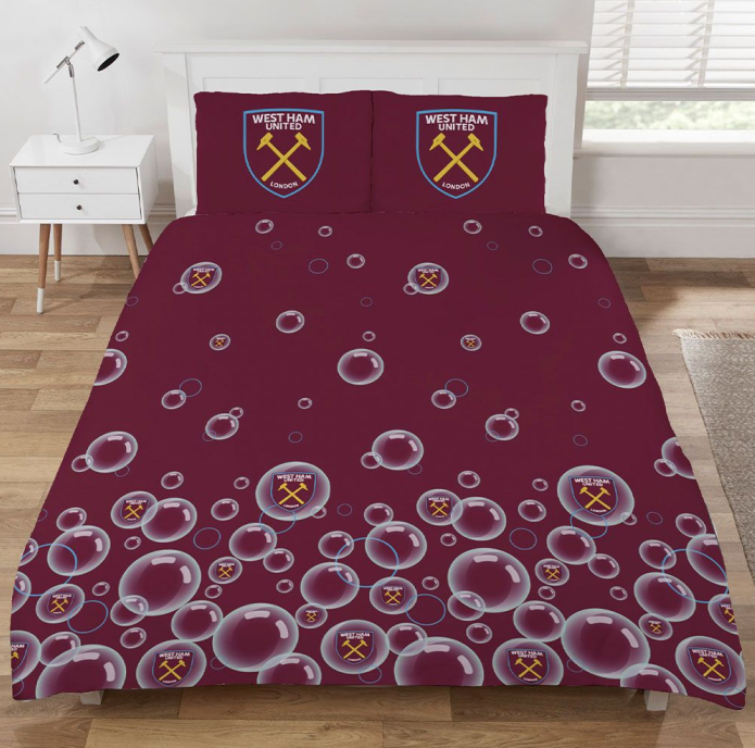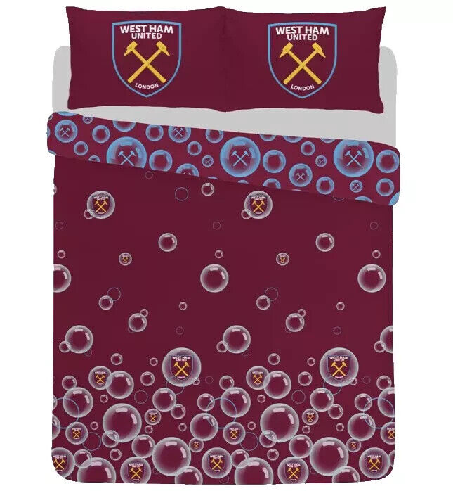 West Ham United Double Duvet Cover Set Reversible Football Bedding Bubbles