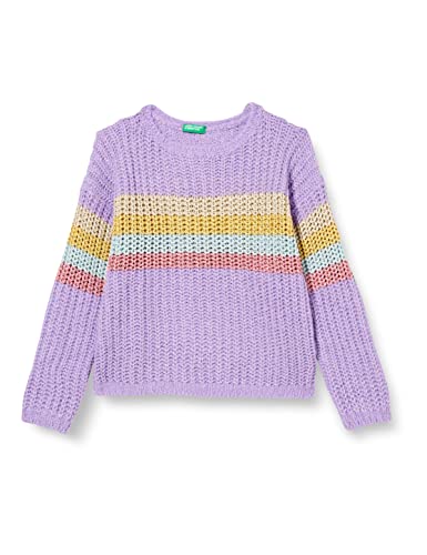 United Colors of Benetton Girl's Jersey G/C M/L 116QQ101O Long Sleeve Crew-Neck Sweater, Purple 911 Colored Stripes, 160