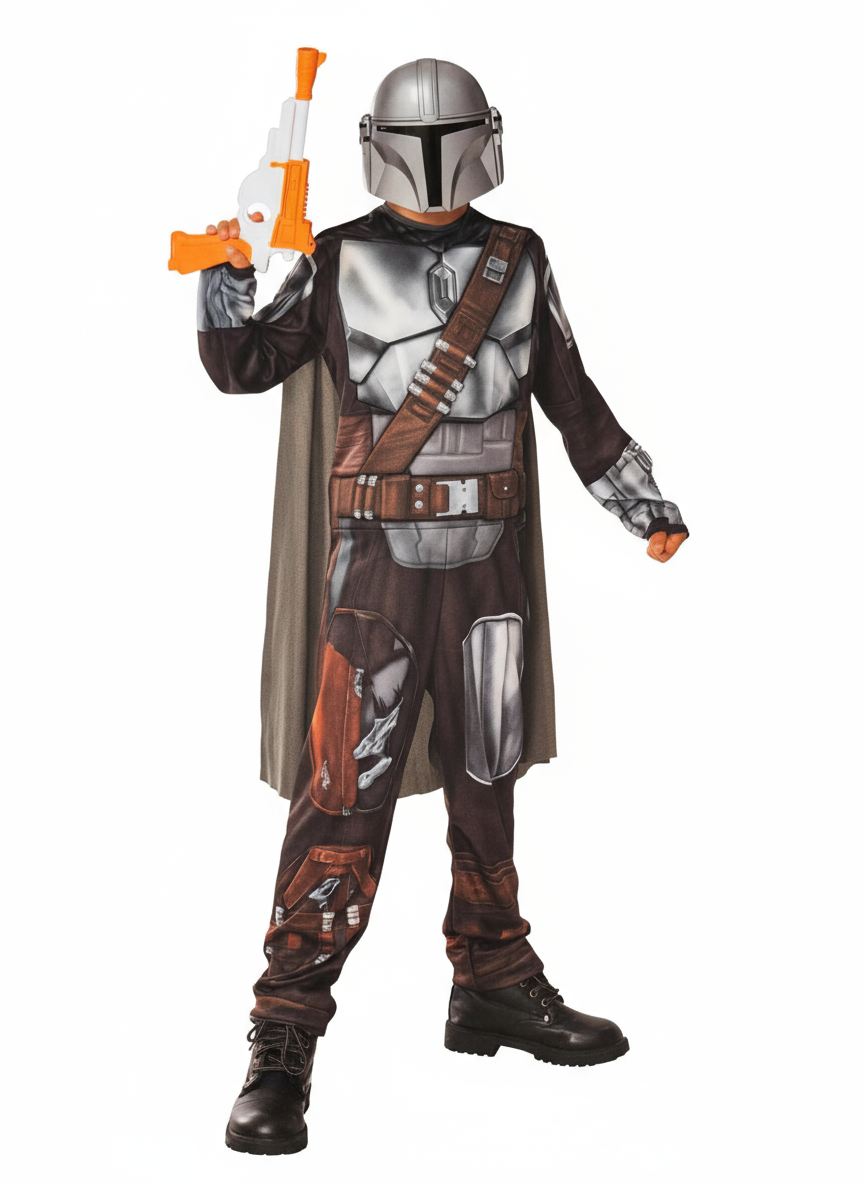 Mandalorian Kids Costume Classic Universe Movie Alien Costume With Half Helmet Cape For Halloween Cosplay Costume Party Outfit, M