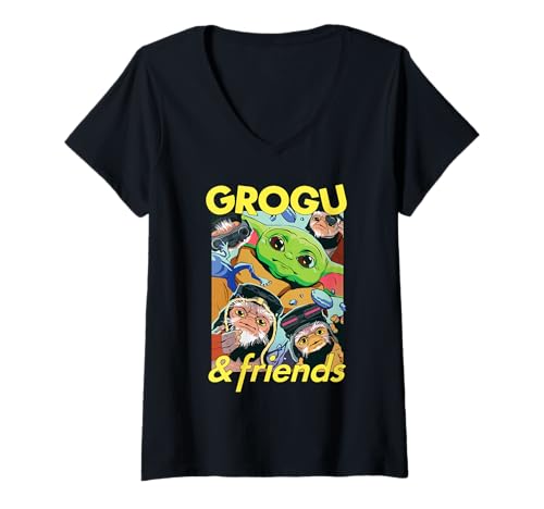Women's The Mandalorian and Grogu Pop Art Grogu & Anzellan Friends V-Neck T-Shirt