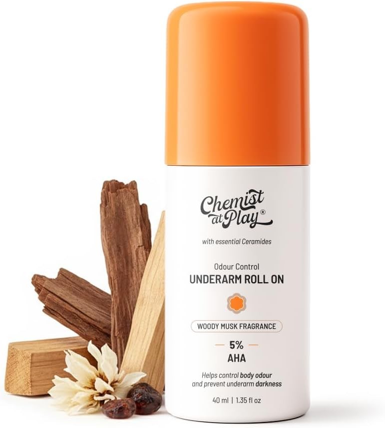 Chemist at Play UnderArm Roll-On with 5% AHA| Lactic & Mandelic Acid|Prevents Odour, Brightens Skin & Exfoliates Underarm| For Sensitive Skin|Woody Musk Fragrance| Alcohol & Aluminium Free| 40 ml
