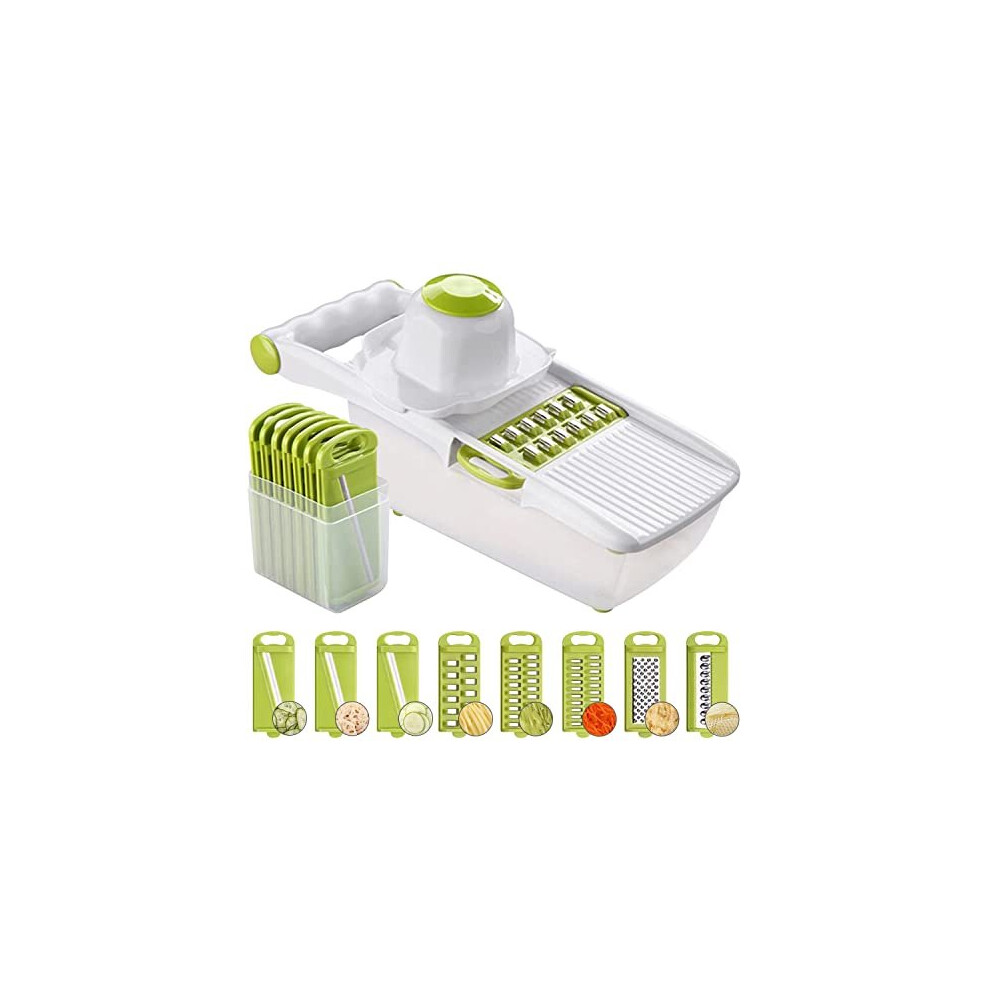Mandoline Slicer All in 1, Kitchen Mandolin Vegetable Cutter Grater with Multifunction Interchangeable Stainless Steel Blades and Food Container for