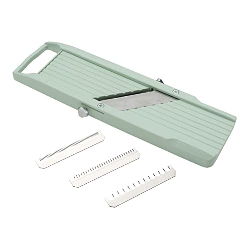 Benriner BN-1GR Japanese Handheld Mandolin Slicer with Three Interchangeable Stainless-Steel Blades-Ivory, Vegetable Fruit Cutter Peeler, Stainless Steel, Green