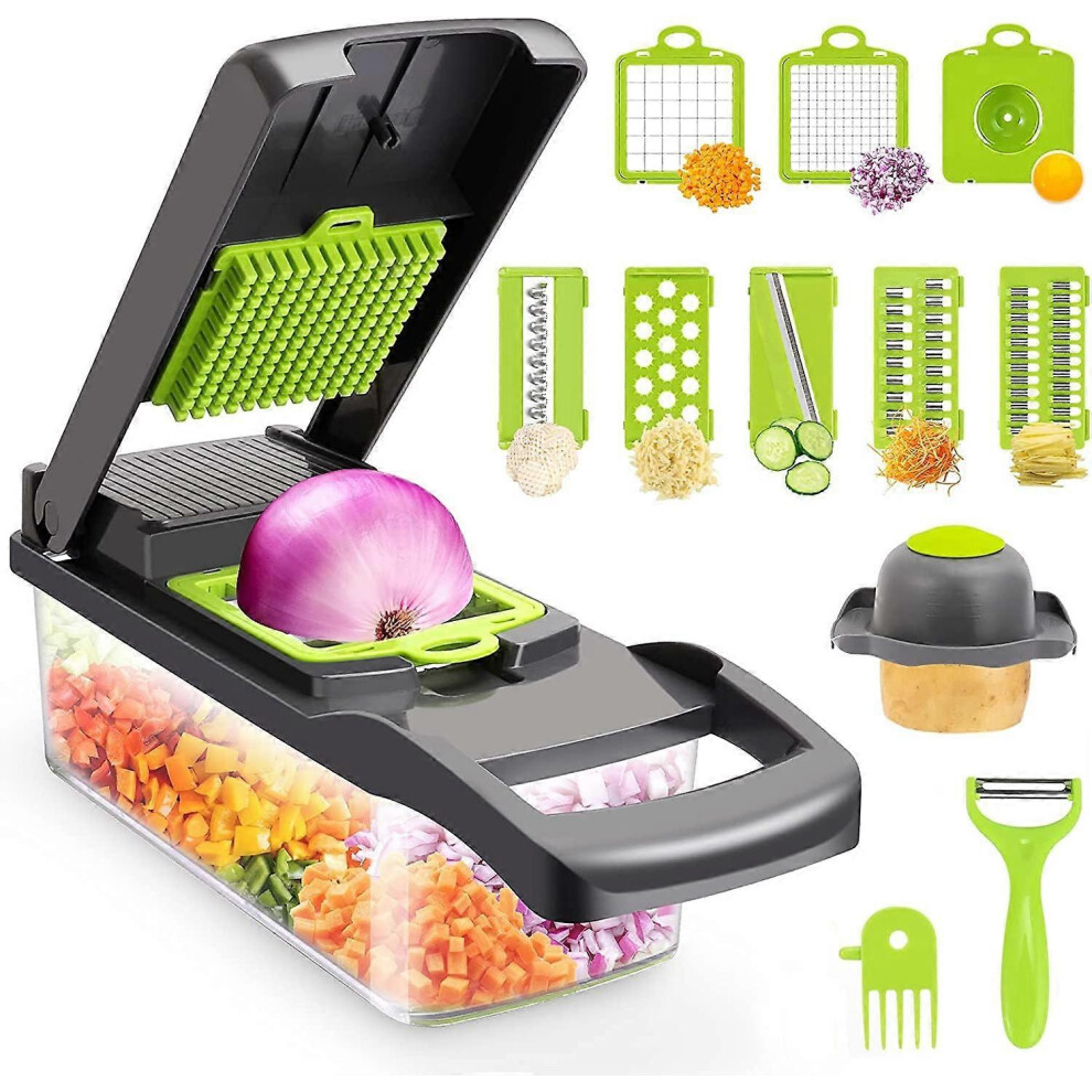 (As show, One size) Multifunctional 13-in-1 Vegetable and Fruit Chopper, 8 Interchangeable Blades, Onion Chopper, Mandolin Slicer, Vegetable