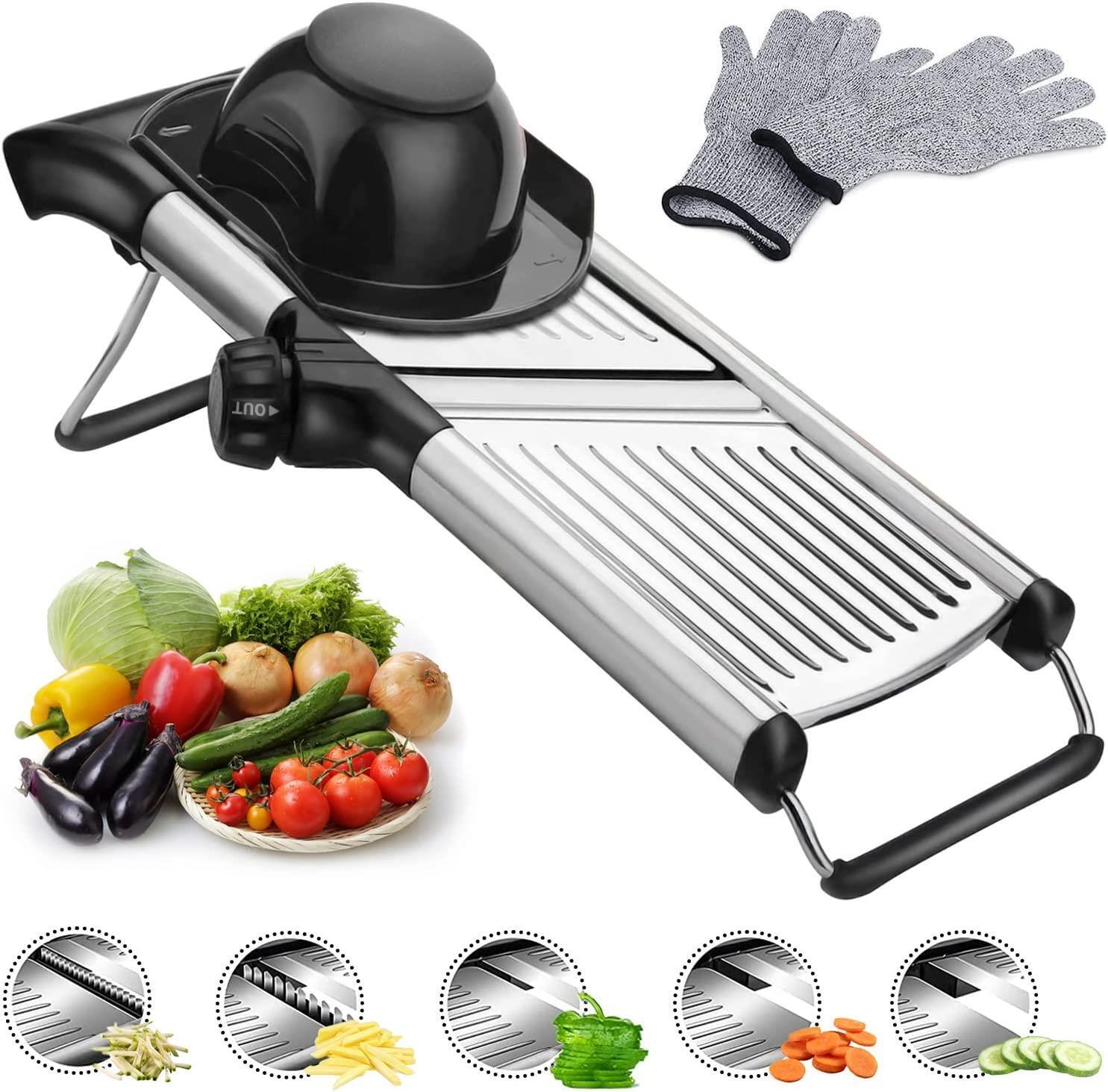 ADOV Mandoline Slicer Professional, Stainless Steel Blade Vegetable Cutter with Safety Hand Gloves, Adjustable Kitchen Mandolin Julienne Food Slicer for Potato Onion Tomato Cabbage Fruits Veg Slicing