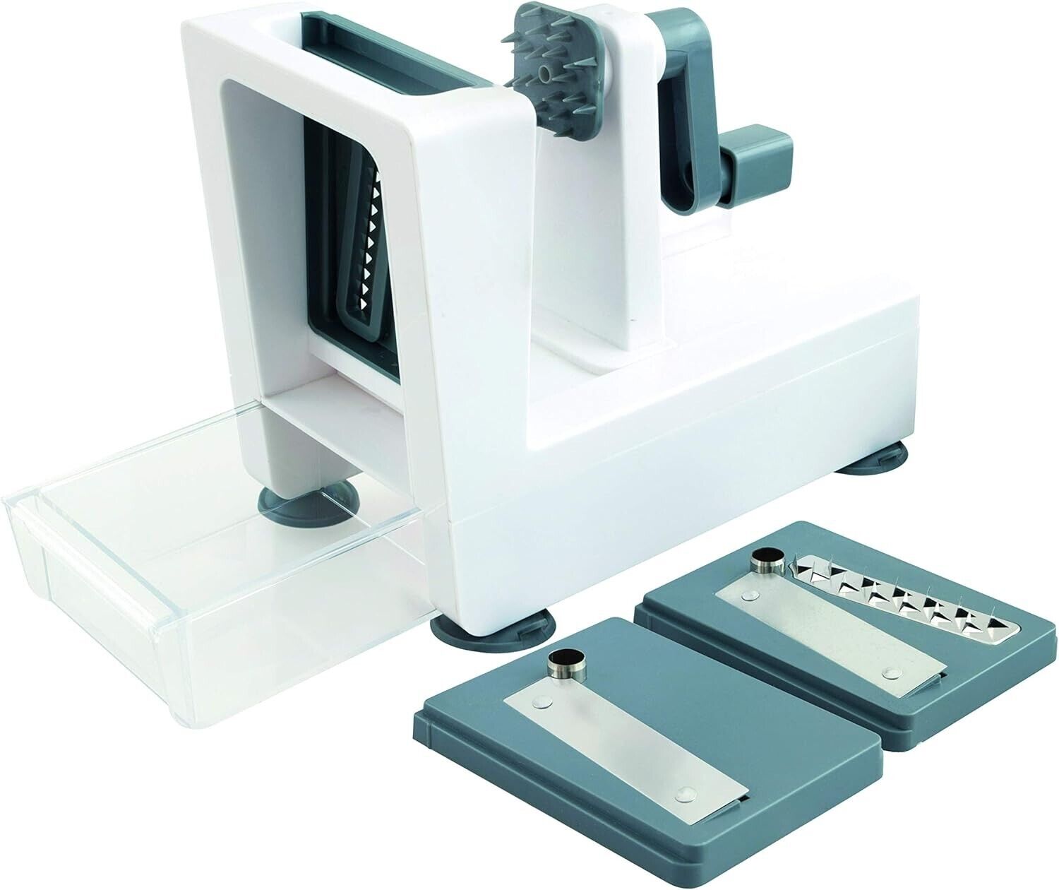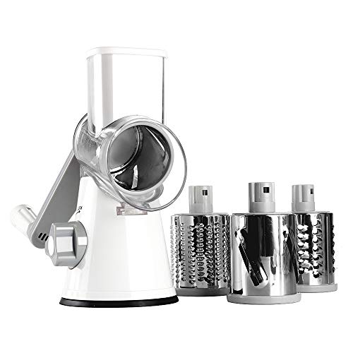Ourokhome Cheese Grater Rotary Shredder, Kitchen Speed Mandolin Slicer Hand Crank Grinder with 3 Interchangeable Blades and Handle for Cheese, Vegetable, Walnut, Chocolate, Potato, Carrot, White
