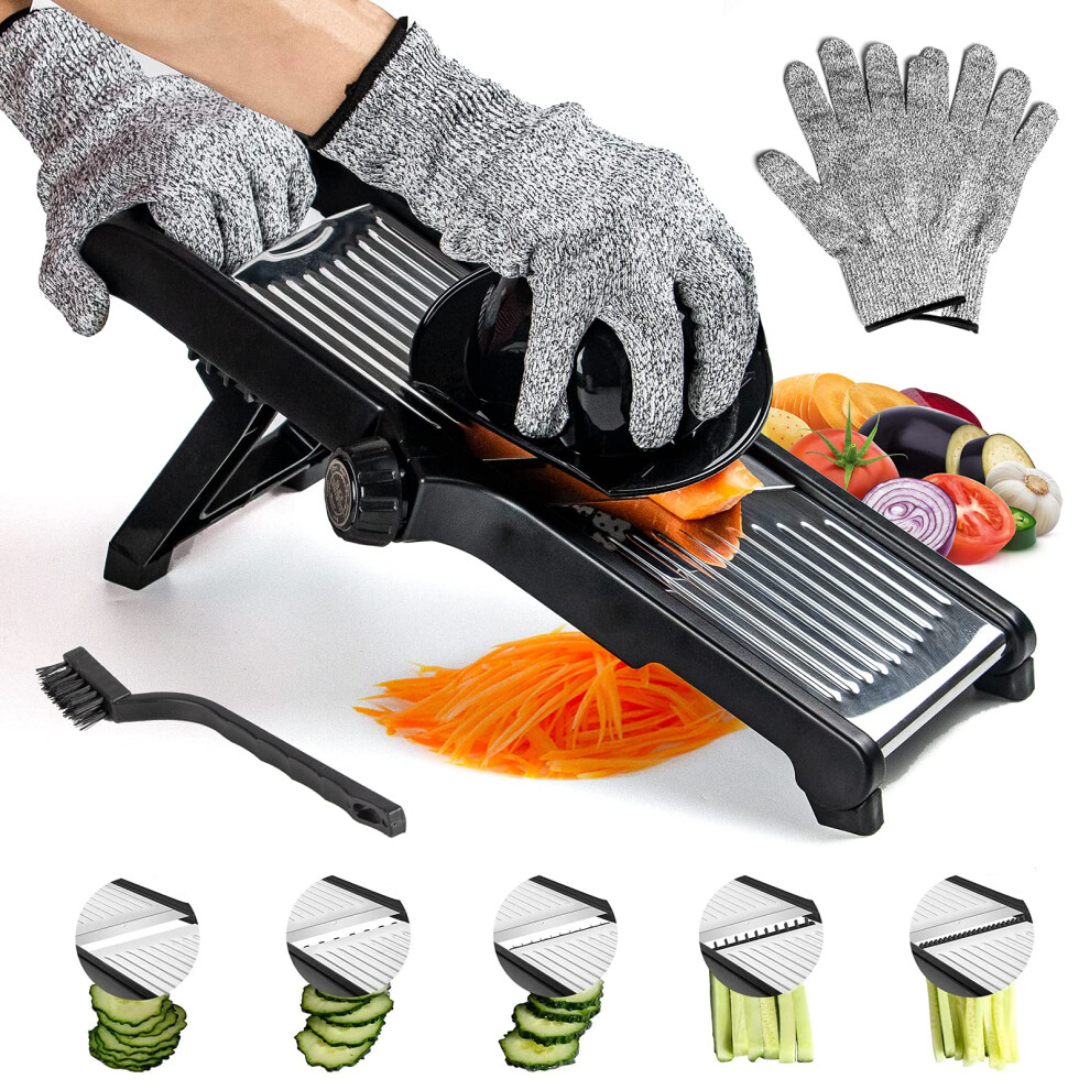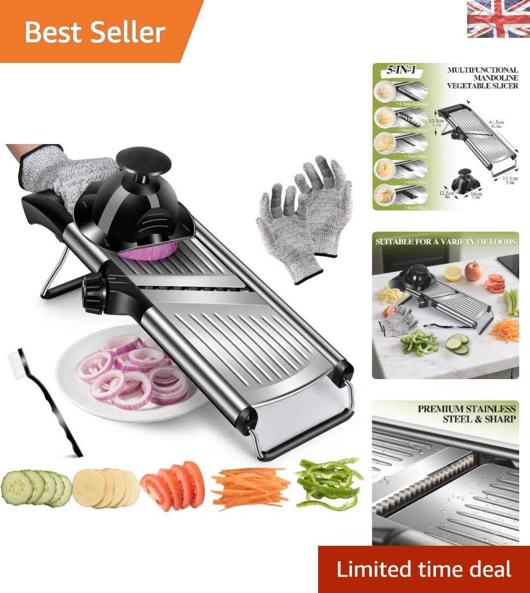 5in1 Mandolin Vegetable Slicer, Adjustable Stainless Steel Grater, Multifunctional Cutter with Gloves, 40 Cm