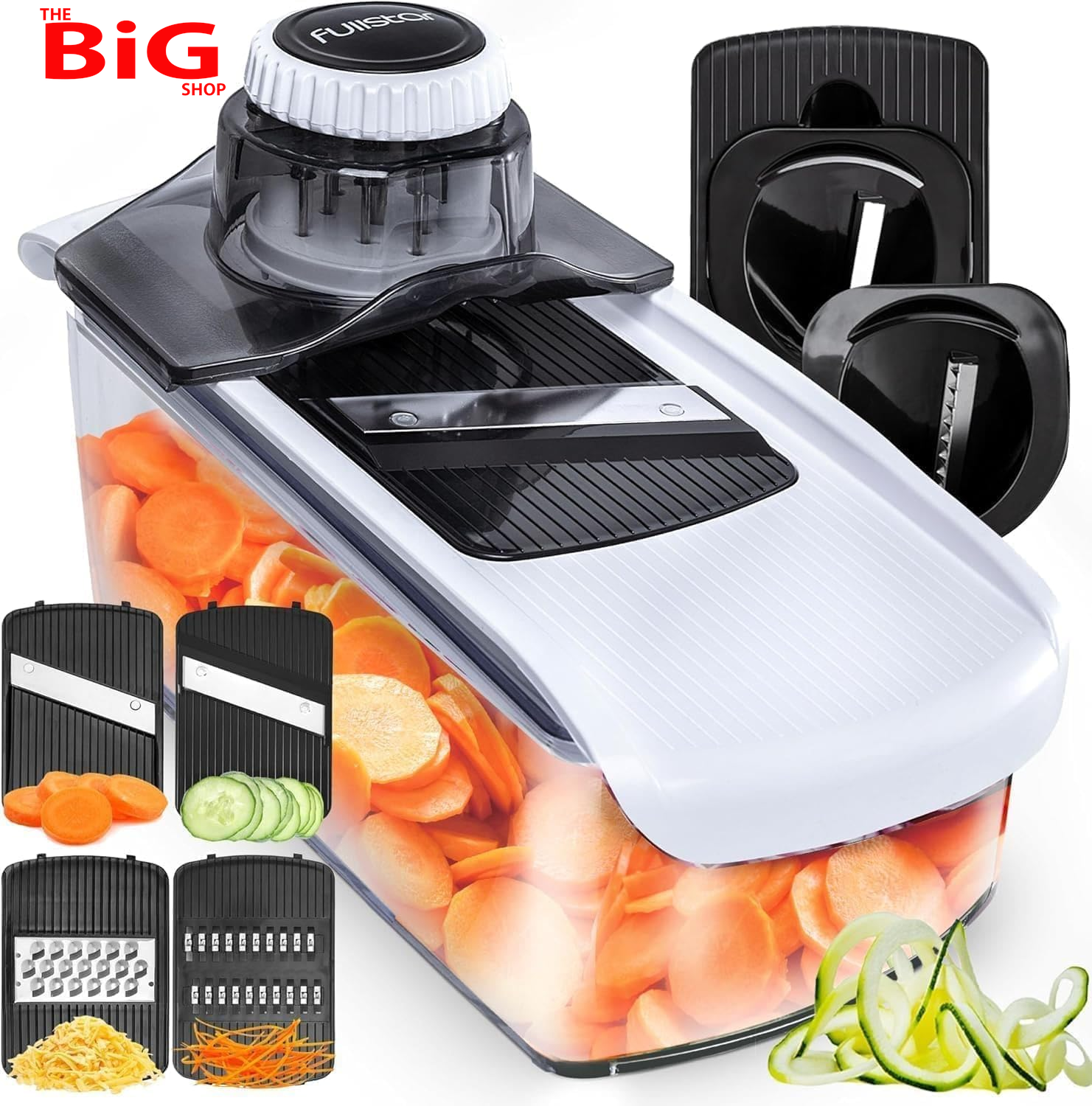 Fullstar Kitchen Mandoline Vegetable Slicer - Mandoline Food Slicer - Veggie Julienne Cutter & Cheese Grater - Potato Veg Slicer - Kitchen Tools & Gadgets (11-in-1 White)