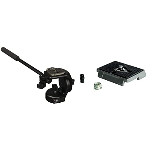 Manfrotto 128RC, Micro Fluid Video Head with Quick Release Camera Plate, Aluminium & 200PL, Quick Release Plate with 1/4 Inch Screw, Compatible with DSLR, Compact System Camera, Mirrorless