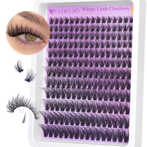 EYDEVRO Wispy Cluster Lashes Natural Lashes Individual Cluster 9-18mm 192 Pcs Lash Clusters CD Curl Eyelash Clusters Individual Eyelashes Reusable Comfortable False Eyelashes Manga Lashes