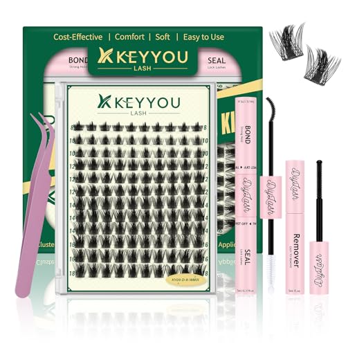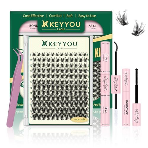 KEYYOULASH Cluster Lashes Kit 144pcs 8-16MIX Anime Wispy Cluster Lashes Thin Band Lash Extension Kit with Bond and Seal,Remover,Applicators for beginner DIY Manga Eyelashes at Home (KY08 Kit)