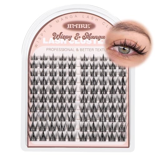JIMIRE Manga Cluster Lashes Natural Looking 180Pcs Individual Eyelashes Wispy Eyelash Extensions Lashes Individual Cluster 8-16MM C Curl Anime DIY Eyelash Clusters at Home