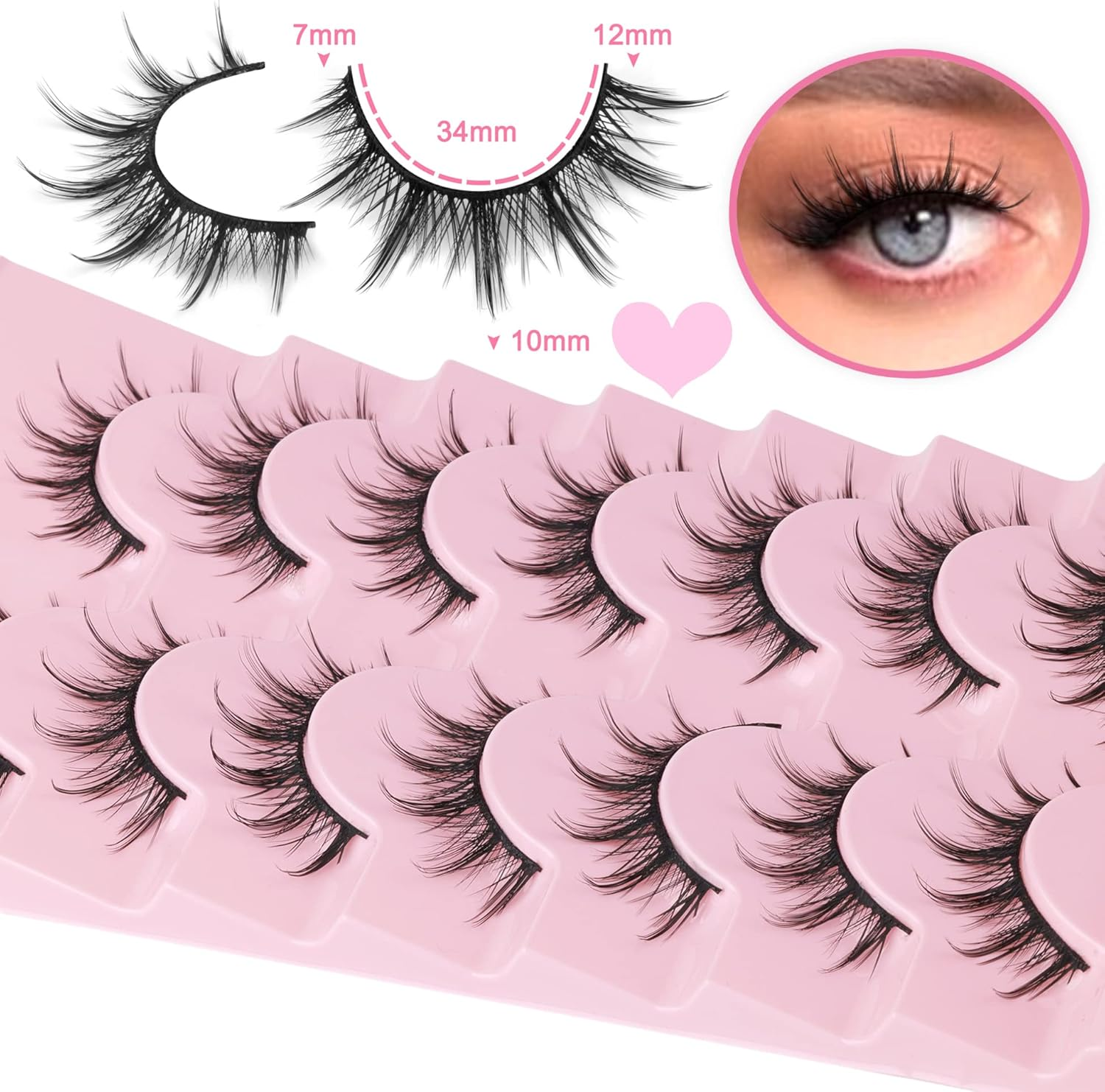 MOTIBACK Eyelashes - 7 Pairs of Realistic Manga Lashes, Soft Lashes for Everyda