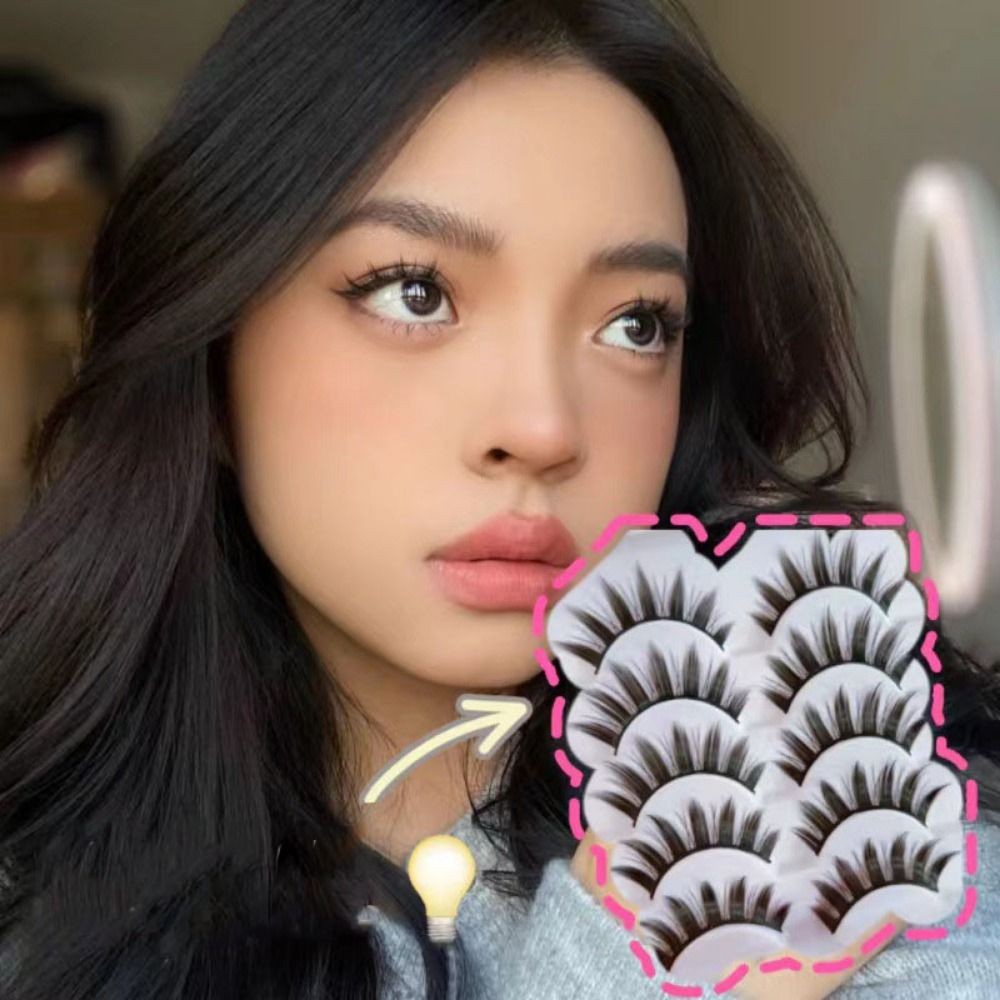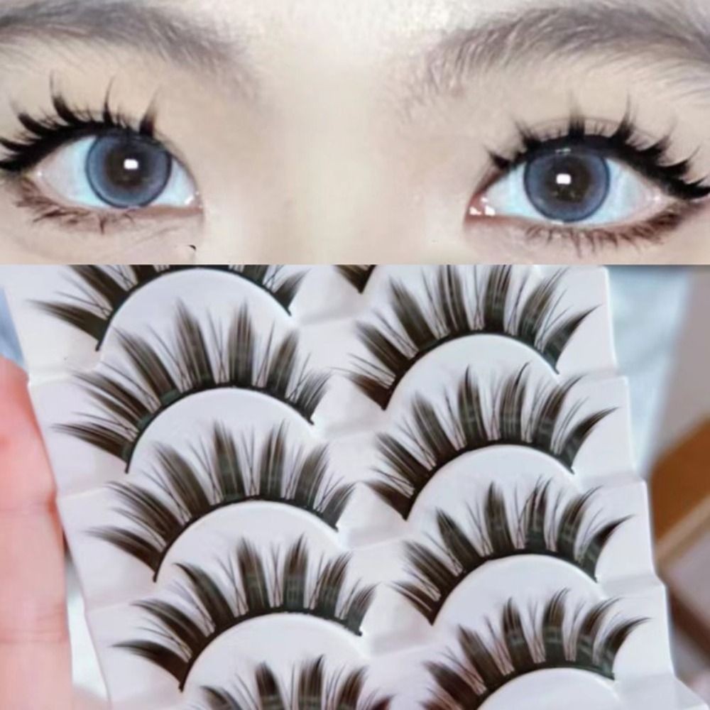 False Eyelashes Natural Cosplay Lashes Doll Anime Japanese Faux Mink Lashes Pack Spiky Manga Fake Eyelashes Wispy Long Thick Ruffle Fake Eye Lashes 5 Pairs