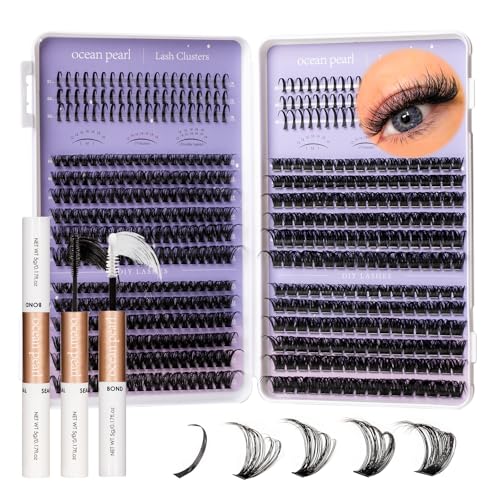 Ocean Pearl Lash Clusters Kit 564 pcs, Eyelashes, spike-effect cluster lashes 60D/80D/100D/150D (10-18 mm) DIY lash extension kit, manga-/anime-inspired Cluster Eyelash Extensions with lash bond+seal