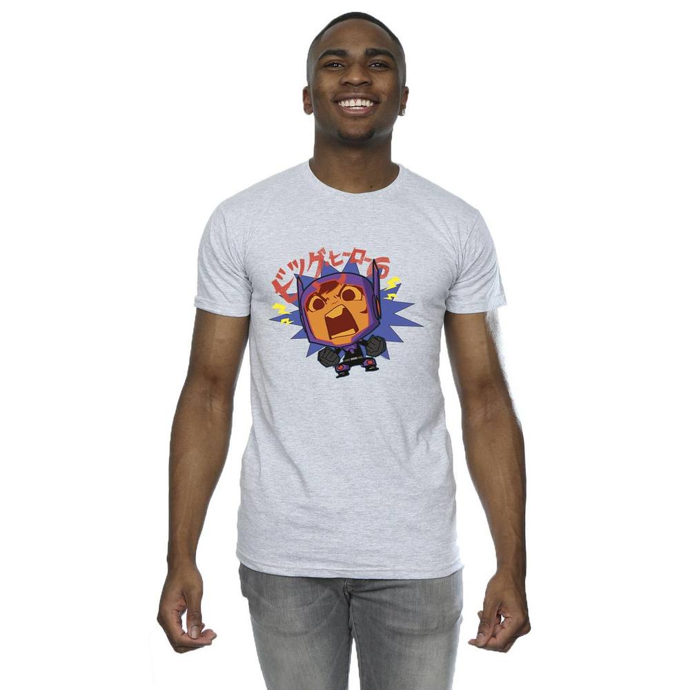 Disney Men Big Hero 6 Baymax Hiro Angry Manga T-Shirt in Grey | Size: X-Large