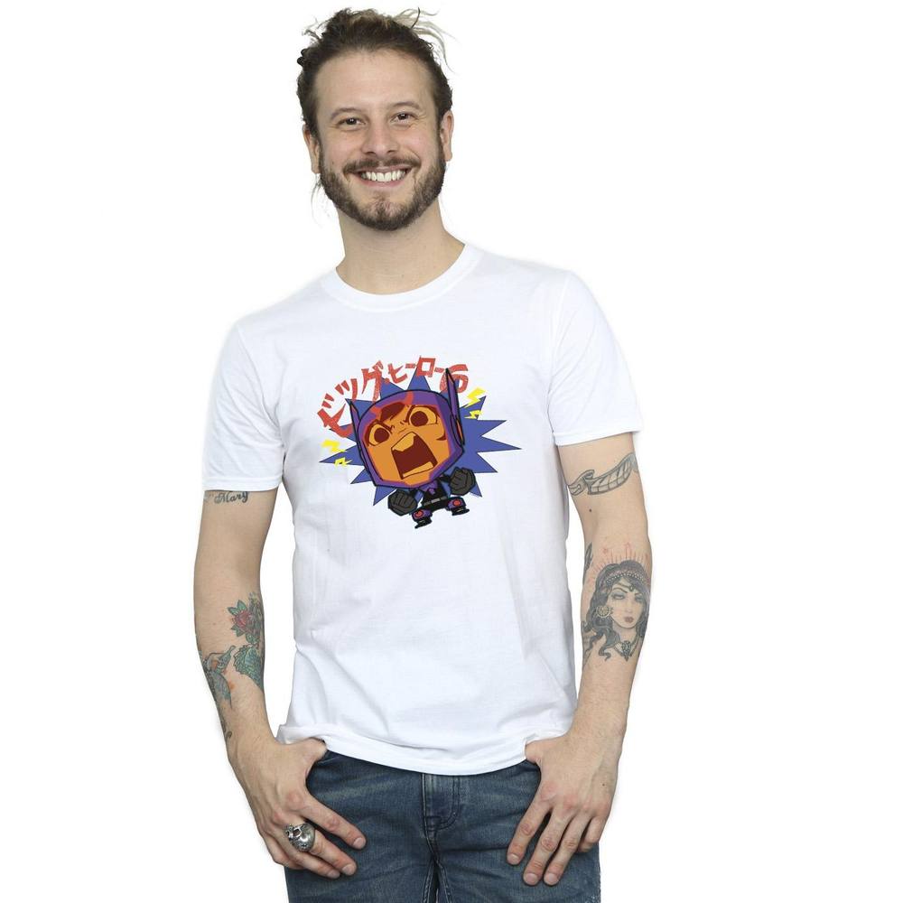 Disney Men Big Hero 6 Baymax Hiro Angry Manga T-Shirt in White | Size: X-Large