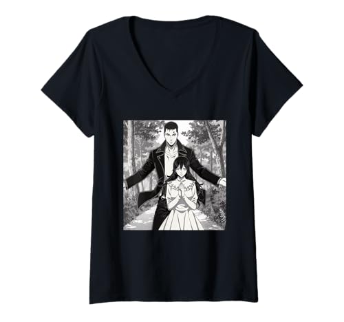 Womens Manga Couple in Dramatic Scene V-Neck T-Shirt